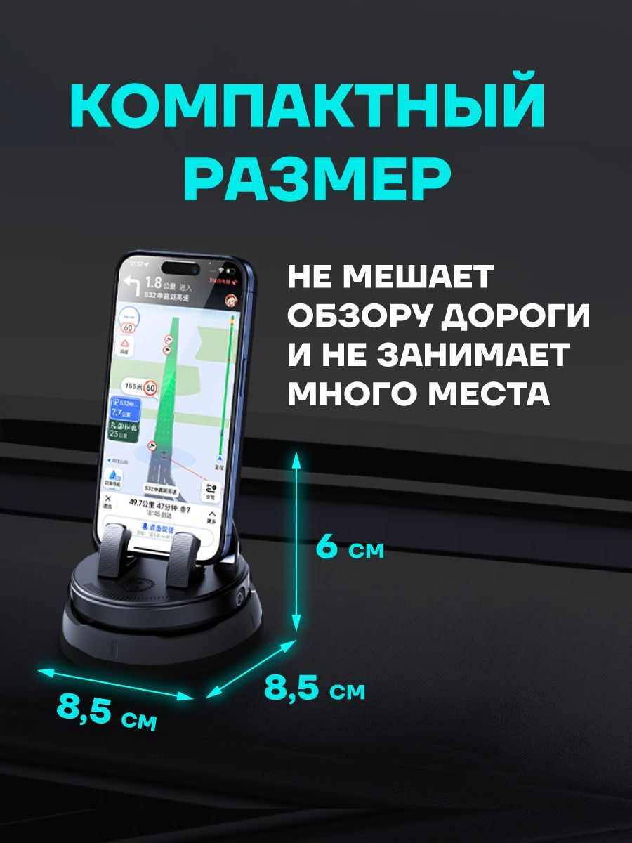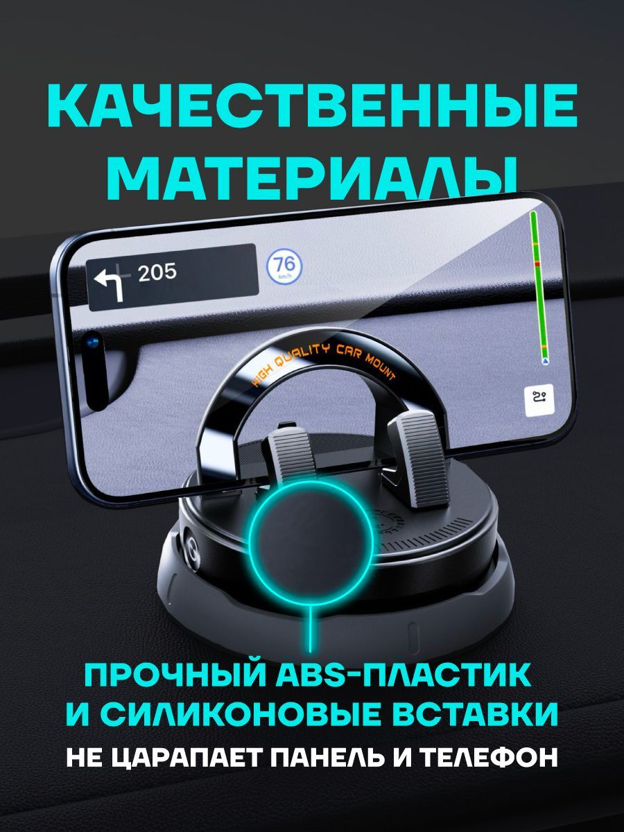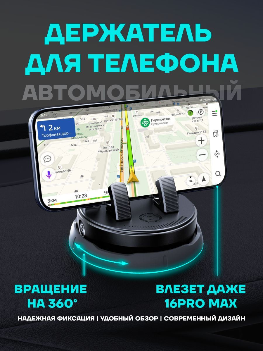 Эргономичный держатель на присоске легко закрепится на приборную панель или лобовое стекло благодаря прочному силиконовому основанию. Конструкция позволяет свободно поворачивать устройство на 360°, обеспечивая оптимальный обзор экрана во время движения. Универсальная модель подойдет для большинства современных смартфонов с диагональю до крупных форматов.